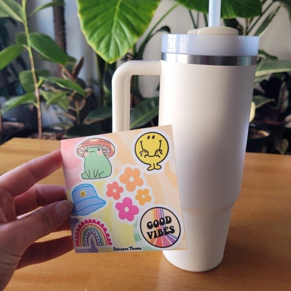 Plancha con stickers de vinilo con tecnología UV, son resistente al agua y a los roces!