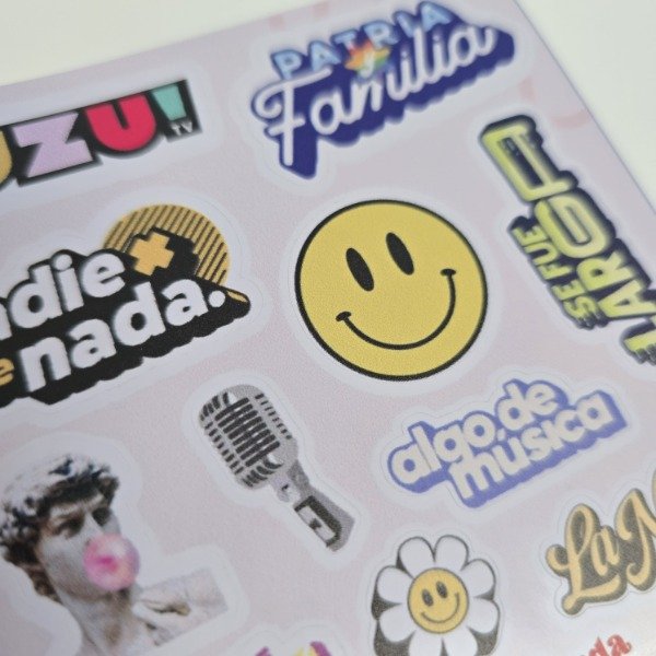 Plancha con stickers de vinilo con tecnología UV, son resistente al agua y a los roces!